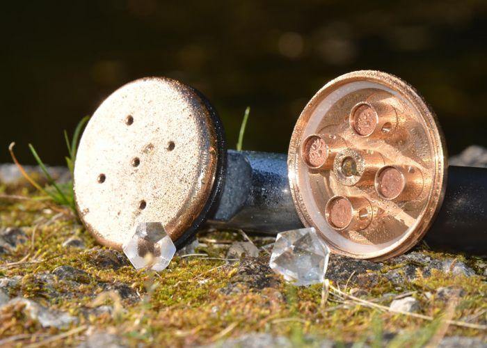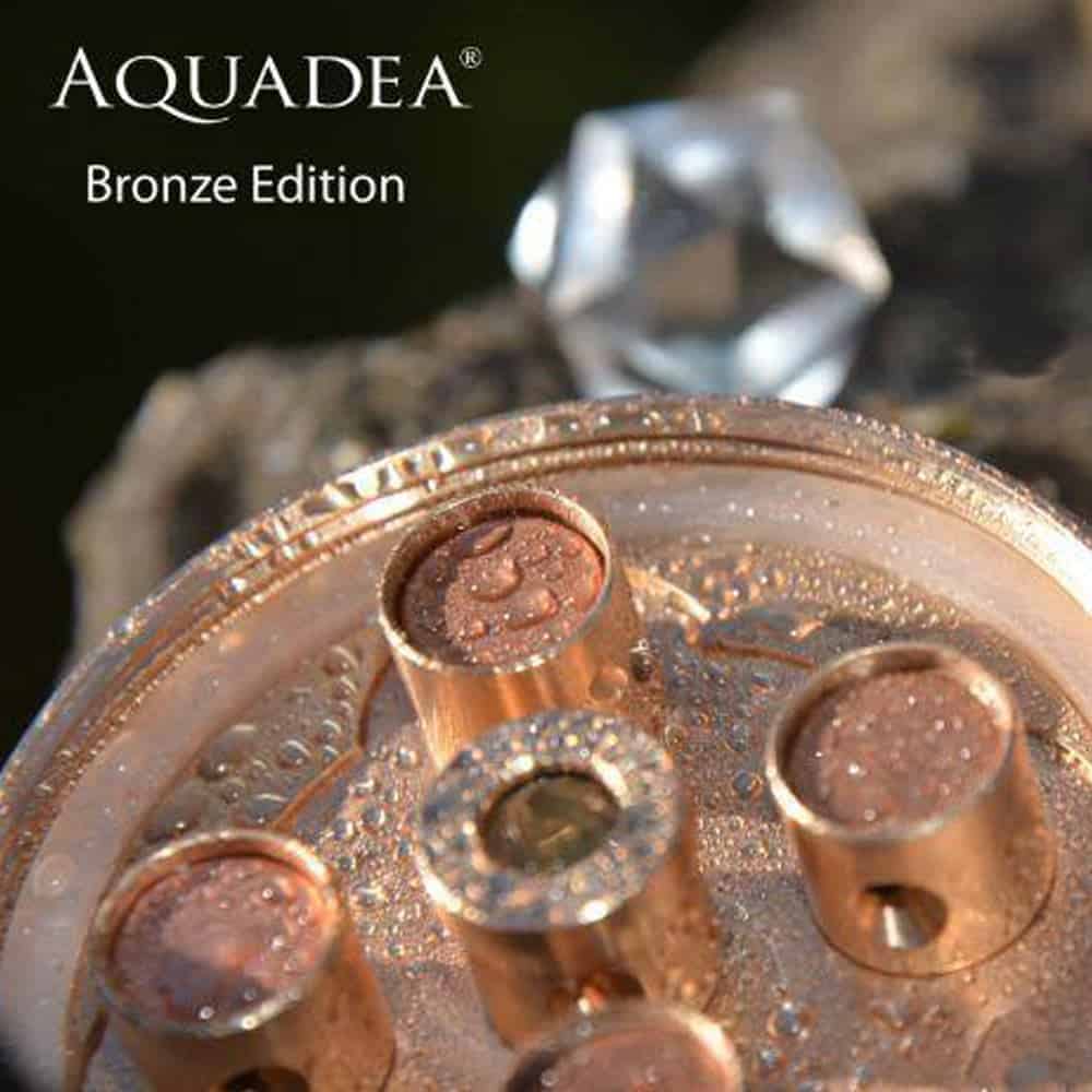 Precision crafted showerhead combining noble metals, exquisitely cut crystals and precious gems immersed in Crystal Vortex Implosion Chambers using Aquadea Light Crystal Technology. The optical appearance of the copper creates a feeling of familiarity and security reminiscent of gentler times, and brings moments of nostalgia and ancestral wisdom into your shower experience. Transforming your entire shower experience.