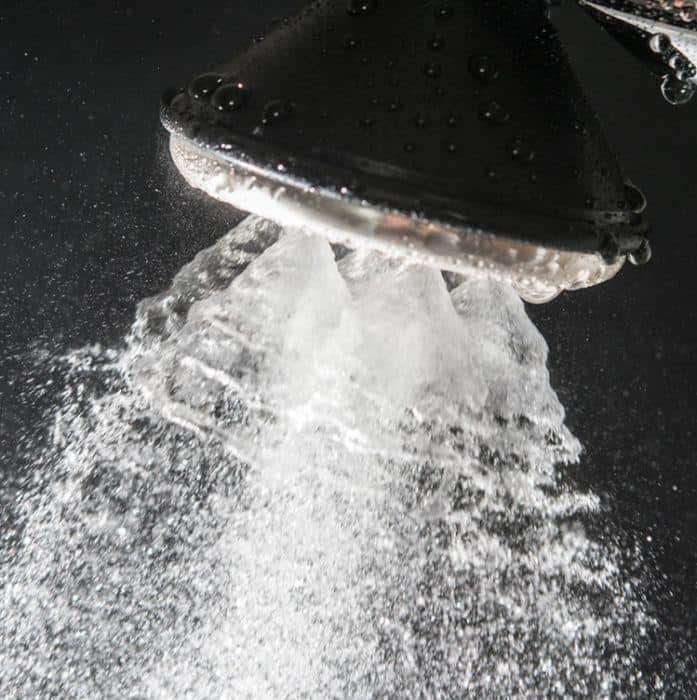 When the water impacts the crystal the force from the subsequent vortex-chamber elicits the crystal structure unique vibrations bringing forth its own very special overtone. The pureness and precision of the crystal vortex-chambers are complimented with the root tone of the Showerhead base noble metal allowing for a unique sonic composition and soundscape to be created and experienced.