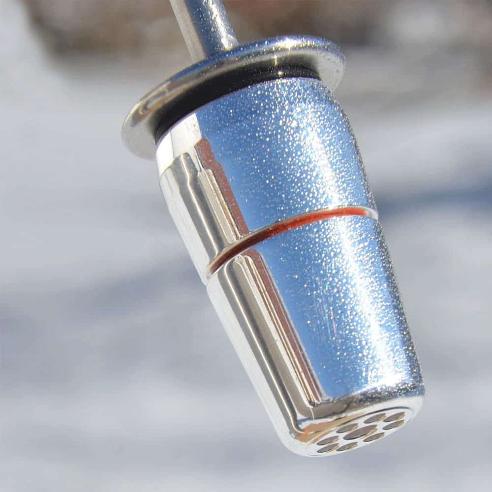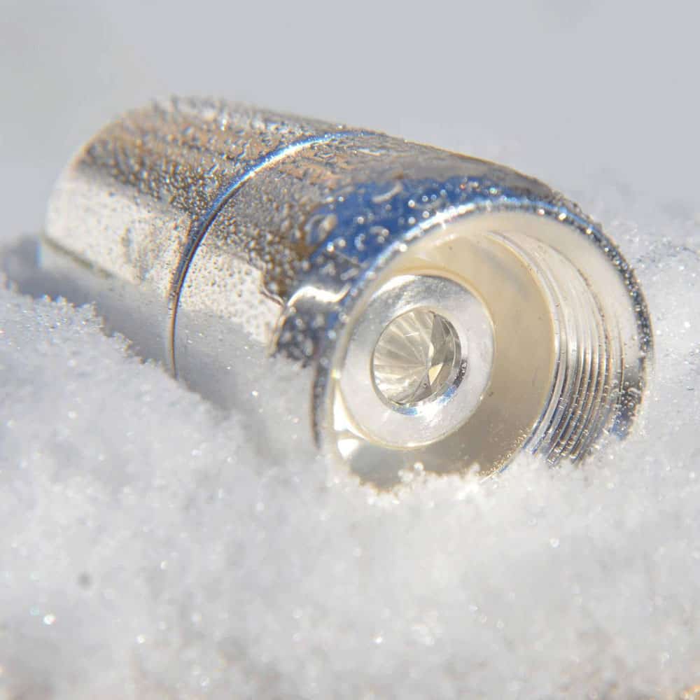 Each vortex chamber comes with a choice of a precision cut crystal either Quartz or Rose Quartz as standard or a selection of bespoke choices allowing for unique combinations and is further encased in a choice of noble metals; Silver, Gold (or Titanium) for a highly resonant and magical water experience. Crafted according to the "Golden Section" to produce geometrical vortices and coherent patterns of energy which amplify and accelerate the water invigorating and infusing much higher frequencies into the water and the energy field of the environment. Proportions are calibrated to within 1/100 mm in order to uphold this geometry.